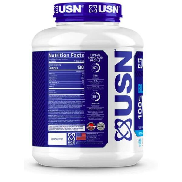 Blue Lab 100% Whey de la marca USN, es una proteína de suero que se destaca por su fácil absorción en el cuerpo. Contiene muy poca grasa y carbohidratos en comparación a otras marcas. Al tomar proteínas podrás notar múltiples beneficios como: